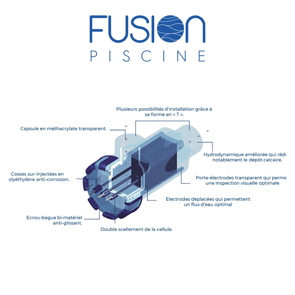 La cellule bipolaire compacte Fusion SMC est conçue pour offrir un excellent rendement avec un entretien réduit. Les porte-électrodes et capsule transparents permettent une inspection visuelle rapide. Les connexions électriques rapides, sans écrous, ainsi que les cosses surmoulées isolantes, facilitent l’installation et la maintenance.