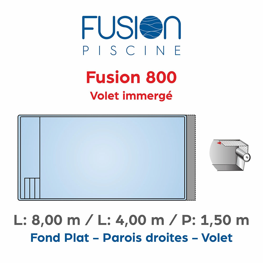 Piscine coque Fusion 800 volet immergé 4 marches banquette
